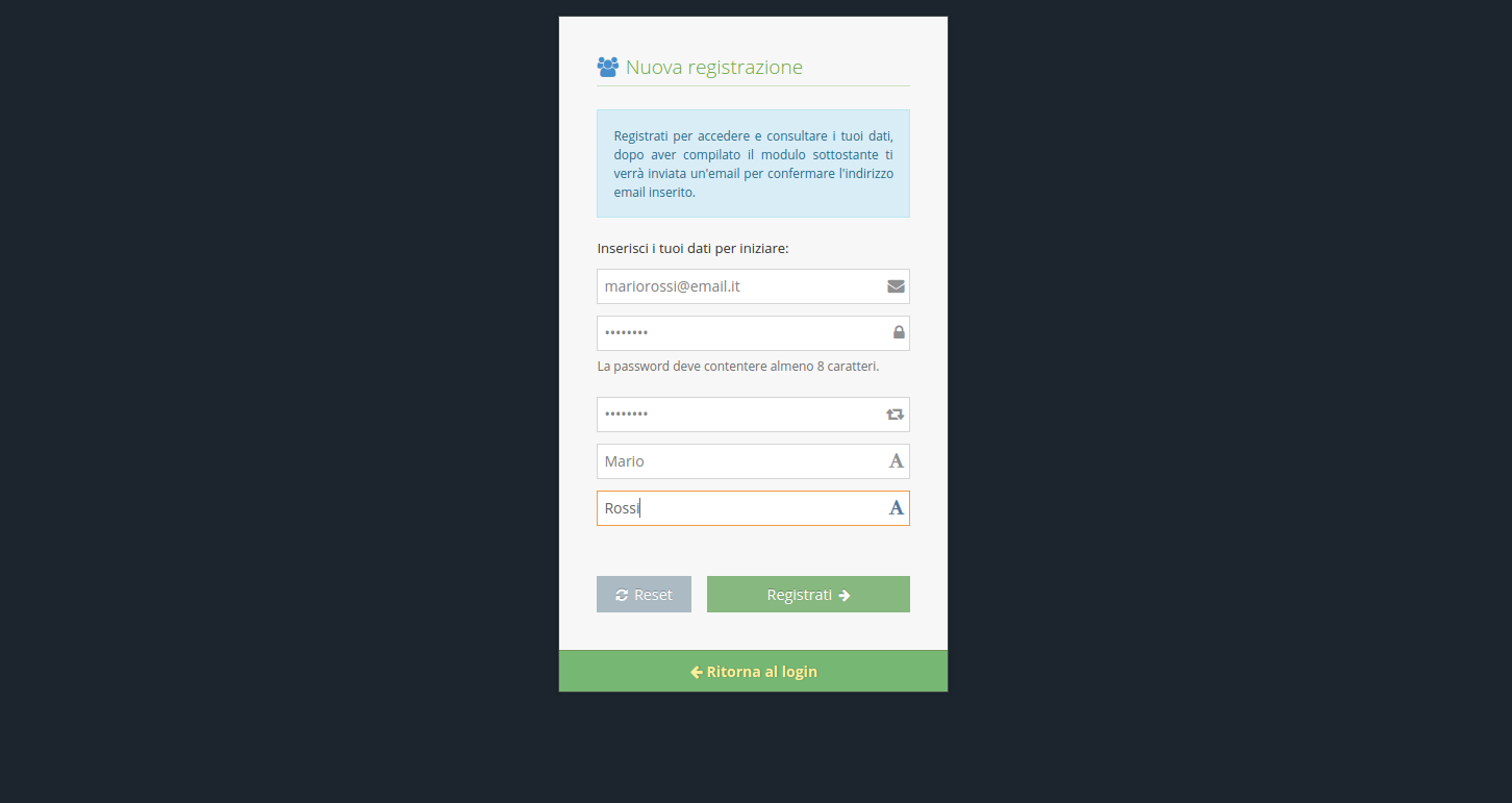 Successivamente si clicca su "Registrati" e si verrà reindirizzati alla schermata di Login.